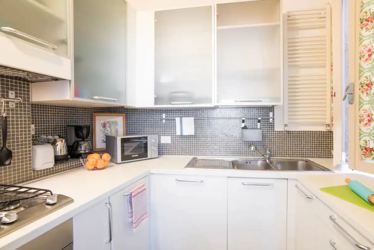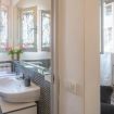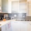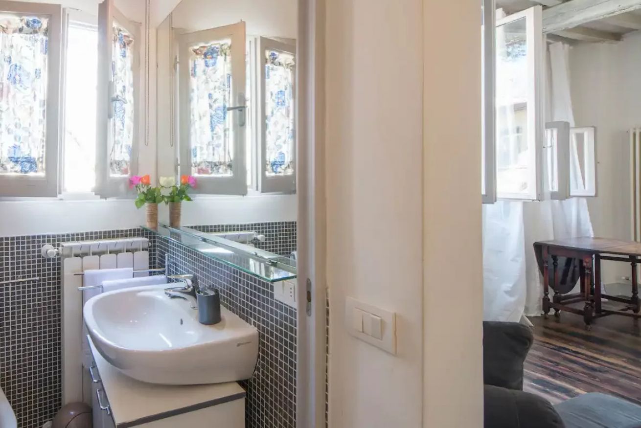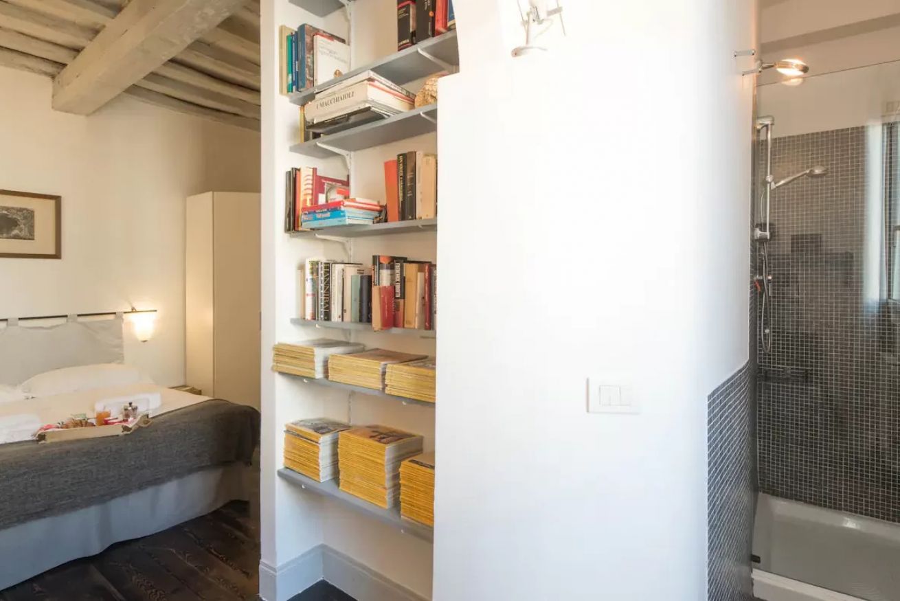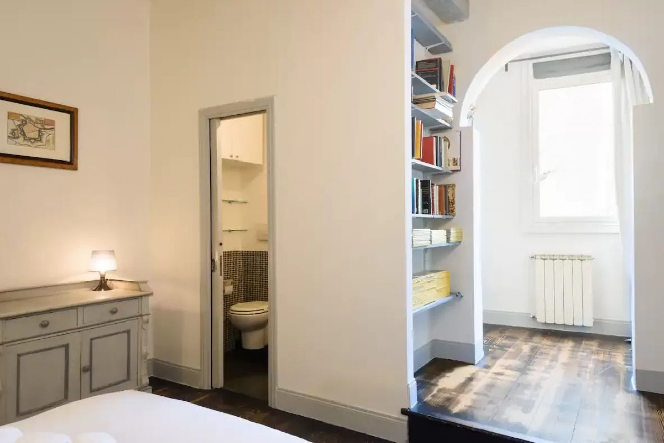Accogliente appartamento con travi a vista e pavimento in legno, composto da un salotto con divano letto matrimoniale, tavolo da pranzo, aria condizionata.
