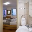 Camera matrimoniale, salotto con divano letto, cucina e bagno.