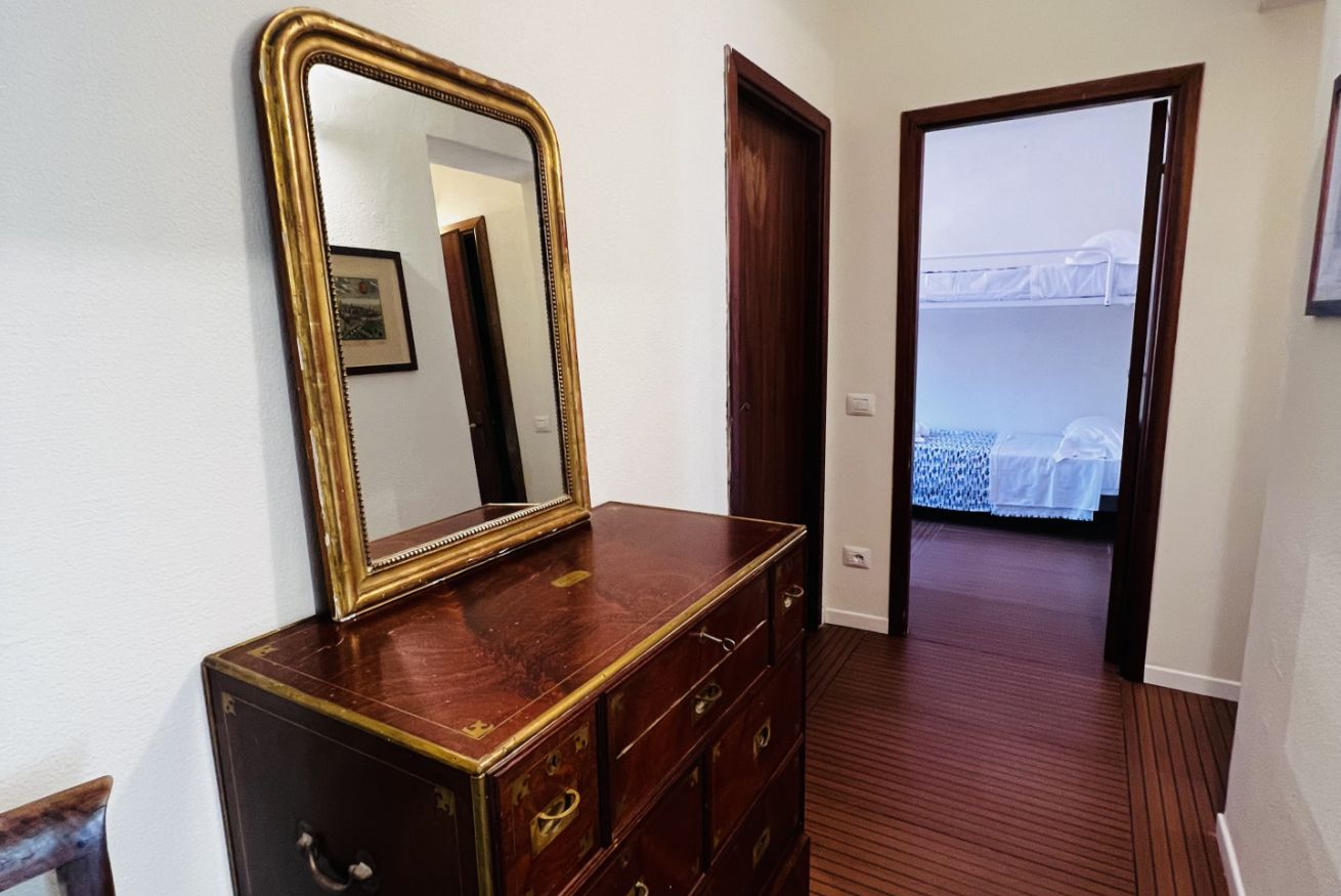 2 camere da letto matrimoniali, 1 camera con 2 letti a castello (4 posti), grande salone con vista e accesso alla terrazza 2 bagni, cucina. Posto privato per 2 auto.